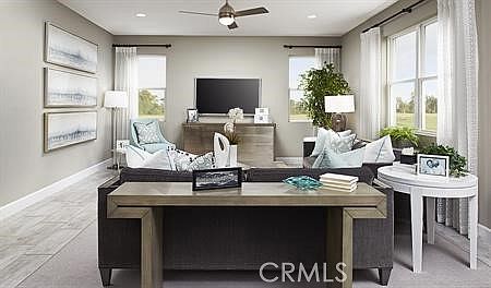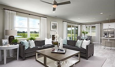 Explore this must-see Moonstone home! Included features: a spacious great room with added windows; a well-appointed kitchen offering white thermofoil premier cabinets with soft close, Miami Vena quartz countertops, stainless-steel appliances, a center island and a walk-in pantry; a main-floor bedroom and full bath in lieu of a study and powder room; a large loft; an upstairs laundry pre-plumbed for a sink; and an elegant primary suite showcasing extra windows, an immense walk-in closet and a private bath. This home also has wood laminate flooring with carpet upstairs. Home is located on the end of a cul-de-sac with a gorgeous view on top of Terramor. Don't miss out!