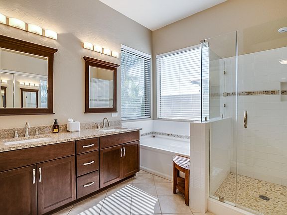 - Master Bathroom: Double Sinks, Separate Shwr & Tub, Private Toilet Room