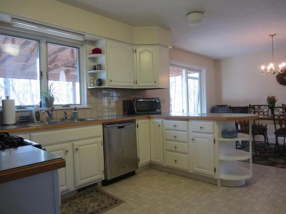 Enjoy whimsical living all 4 seasons. Bright and spacious floor plan, sweet kitchen, walk right out to deck. Second floor has 3 bedrooms, 1 being a master suite. Work and play in your finished basement. When outside take in the natural setting from your front porch, enjoy the fire pit, put your feet up and rest on expansive back deck. New kitchen appliances and washer/dryer. Close to Elementary School and on TCAT Bus Line. Invisible dog fence installed.