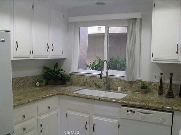 This turnkey, cozy, private Garden Villa model is conveniently located on the first floor and a close walking distance to Clubhouse 4. This freshly painted 2 bedroom and 2 bath condo features double entry door, scraped ceilings, crown molding, granite counter tops in the kitchen and baths, canned lighting, dual pane windows and sliding doors. The living room is accented with laminate wood flooring and its large windows overlook a peaceful and serene setting with mature trees. This home boasts an energy efficient mini split unit and ceiling fans that keeps you cool during warm summer days. The master bedroom features a brand new wall unit heat pump. The double pane glass sliding door leading to a large patio where you can relax and enjoy the lovely views. The residence has the first assigned subterranean parking space which is steps away from the unit by stairwell or elevator. It is perfect for the golf enthusiast with corner unit parking that can accommodate your car and your golf cart. The community offers many amenities including: 2 golf courses, 7 clubhouses, 5 swimming pools, spas, tennis courts, pickleball, lawn bowling, hundreds of social clubs, a performing arts theater, gym and more. Not only that, it is close to the beach,shopping, major freeways, public transportation, restaurants, doctors and hospitals.