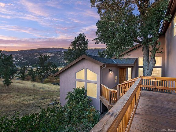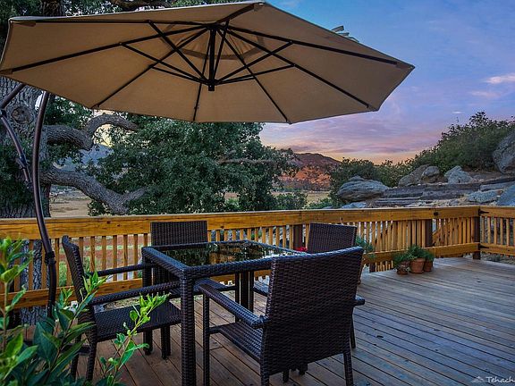 Simply Stunning Sunsets...Absolutely one of the best unobstructed views in highly coveted Bear Valley Springs!This amazing property is perfectly situated on a slightly elevated lot backing up to an expansive greenbelt area to maximize the views. Enjoy the spectacular morning sunrise and evening sunsets from one of many viewing decks, either the large patio deck off kitchen area, the charming balcony off formal living room, or large private outdoor sitting area surrounded by large calming rock formations offering lots of privacy, perfect for star gazing or roasting smores on the small fire pit.This split-wing custom built home is unique in architecture offering an easy flow functional floorplan with vaulted ceilings, extended height windows allowing the outdoor setting inside the home, beautiful living room with extra large pellet stove, gorgeous updated kitchen with stainless appliance, custom extended height backsplash, ample floor-to-ceiling cabinets, spacious master suite with double-sided fireplace, large sitting area and large walk-in closet, upper level guest bedrooms with private bath, large laundry room, large bonus room off garage perfect for workshop or gym. Generac subpanel with transfer switch perfect for power outages.Assessor shows property as a 3-Bedroom, property has office/den which could be used as a 4th bedroom.Just too many details to mention, truly a must see home. Pride of ownership is evident throughout, don't hesitate on this one!