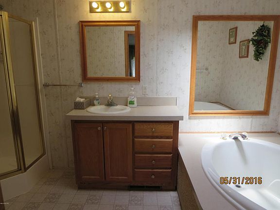 Very nice 3 bedroom, 2 bath, 1400 square foot manufactured home with approx.. 13 acres. Nice stone fireplace and 32x24 garage! Some nice woods! House needs new carpet. Olivet schools!