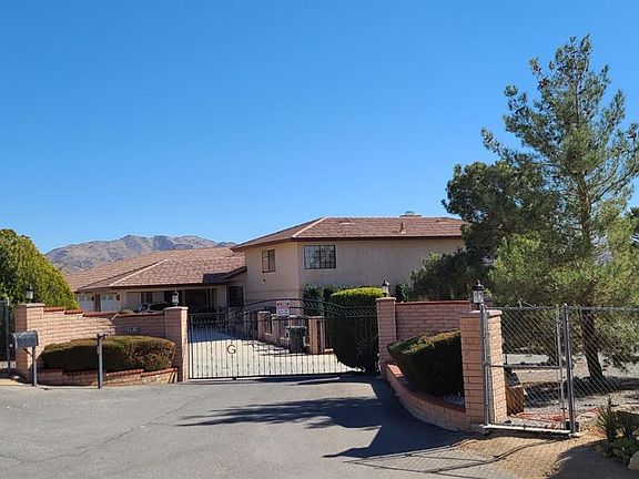 Huge Private Gated Luxury Estate Home with Approx 6,419 sf living area, in One of the Best Areas of the High Desert, Commanding Panoramic Scenic Views (from most rooms), Tri Level-Large 3bd 5.25 Ba approx. 5,139 sqft home (easily add another bedroom with Wall/Door) with detached mother in-law 2Bd 2Ba approx 1280 sqft plus Huge RV garage/workshop. Main Home has a Great Open floor plan with the main bedroom on ground level, Large Family Room with Brick Fireplace (and blower), Formal Dining Area, Huge Kitchen with One of a Kind Island, many Honey Oak Cabinets and Woodwork, Formal Dining Area, Huge Master Bedroom with Gas Fireplace, Large Shower with Seat and Two Shower Heads, Jetted Tub, His and Her sinks, Large cedar line Walk in Closet, large two additional bedrooms (one a suite) on lower level. Big Bonus/Game Room with Bar, Deck and Views. Large Covered Patio in the Back of Home and Porte-Cochere in front for add'l Covered Parking. Low maintenance Front and Rear yards with many Mature Trees. A Well with approx 2.25 fenced acres, and Plenty of Room for Future Pool, Tennis Courts, Horse Facilities, etc. The Second Building/Garge has room for Full Size RV Garage with roll up door, 3 add'l tandem (so RV + 6 cars) parking places including extra deep Workshop, 2bd 2ba Mother In-Law/Guest Home with a Car Port on the side. Property has tons of storage inside home. Much of the future is available and can be negotiated with sale. This is one of the most well laid out properties in the High Desert. Approx 10 min to Apple Valley Airport. In excellent condition but Sold AS Is. Buyer to verify all information. This is a Rare Find!