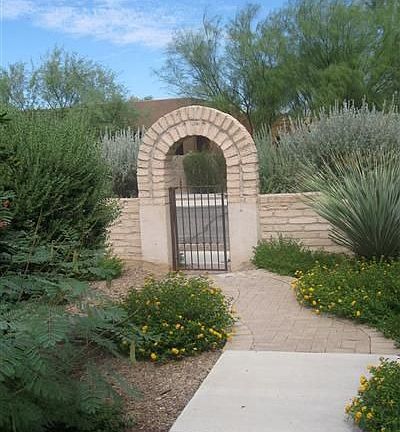 Come see former model for this small gated community.This 3bd/2ba,1519sqft Santa Fe is loaded w/upgrades incl. an enclosed front courtyard with mtn views.Great floor plan, high ceilings,gas fireplace,built in enter.center,many niches and arch details,black GE profile appliances,huge covered back patio with mature trees.Just been repainted and roof recoated, new 16.5 Seer Rheem A/C.Close to Tucson Raquet Club, Riverwalk,10 min to UMC and U of A.