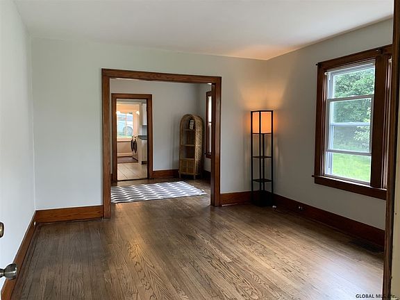 Ideal starter home for the large family w/4 bedrooms, master bedroom upstairs w/its own 1/2 bath. Hardwood floors throughout 1st floor, natural woodwork, some new vinyl laminate type floors too. Great front porch to sit out on & fenced rear yard w/much more land behind to expand to if you'd like. Newer roof, mechanicals, stainless steel appliances, washer & dryer included and in nice size mud room off back entrance. Newer paved driveway. Close proximity to both neighbors left and right but really deep lot, just over 3/4 acre. Kitchen floor is ceramic tile with some cracked tiles so really that's all you have to do. 100% Money Back Guarantee. Property is eligible for 100% USDA financing. RENT-TO-OWN option available, see attached docs.