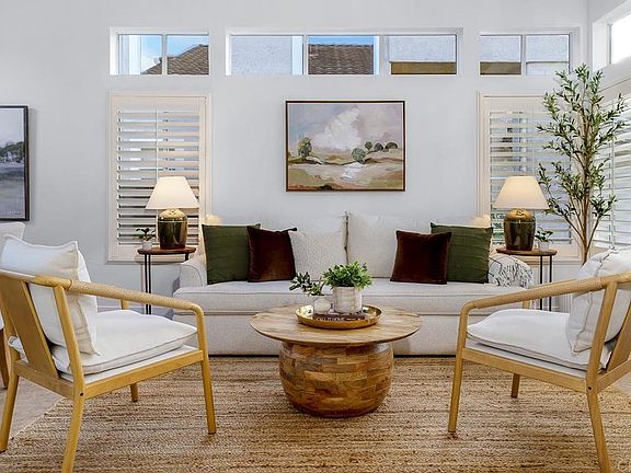 CUL-DE-SAC, CLUBHOUSES, MOVE-IN READY, LARGE YARD. This is an opportunity to transform your lifestyle. A low HOA of $100 provides access to 2 pools/clubhouses and the exclusive Eastlake Country Club. Access to these clubhouses provides amenities such as pickleball courts, tennis courts, volleyball courts, pools, sand areas, hot tubs, playgrounds, and event space. This 3 bed, 2.5 bath home features an oversized backyard with a blank slate for a pool, built-in BBQ, and even a sauna/cold plunge combo. Your double-wide front door opens up to vaulted ceilings and wraps around your breakfast nook, kitchen area, and gas fireplace. Shutters throughout adorn this freshly painted interior. 4" baseboards, wood flooring, and new carpet solidify the move-in-ready feeling when you walk in. Attached is the 2-car garage with a designated laundry room.