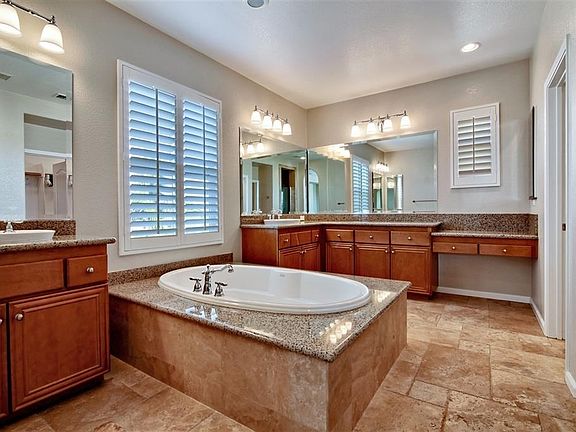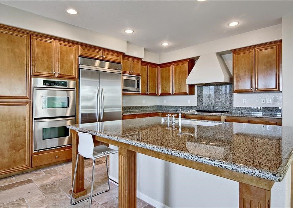 Beautiful and spacious 4 bedroom 3 1/2 bath home in La Costa Greens for Rent. This upgraded home offers travertine flooring shutters gourmet kitchen granite counters large island stainless appliances 2 fireplaces bedroom and full bath on main floor AC outside BBQ 3 car garage and views of ocean and hills community pools tennis courts fitness center community center. Close to shopping movie theater grocery store library restaurants and beaches. No smokers and 1 dog allowed.
