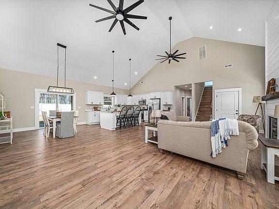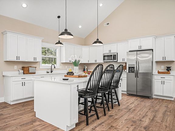 You'll love this floorplan! Enter the front door to soaring vaulted ceilings, a huge open living/dining/kitchen area with oversized quartz island & gas range. Generous primary suite with tasteful tile and large closet. Tankless hot water heater, elec fireplace and Pella windows. Spacious backyard surrounded by white vinyl fence, and covered patio. Must see to appreciate!