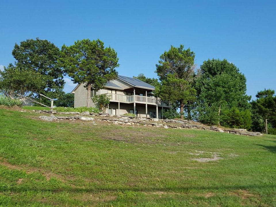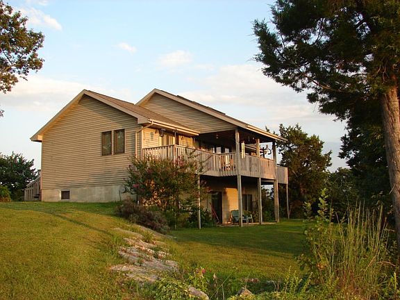 You'll love this Wide Open Walkout Ranch Home, Overlooking Table Rock Lake. Spend your summer mornings on the front covered porch with a fresh cup of coffee and your winter evenings snuggled up by the fireplace with a good book. Situated on Peaceful 1.5 m/l acres in the outskirts of Pioneer Point Subdivision, just forty minutes from Springfield - this house offers everything a family needs to maintain a happy and comfortable lake lifestyle. Some of the perks with this home include:Nice size kitchen with plenty of prep space2nd Kitchen in lower level just needs appliances Main floor Master with French door to the Deck ... Large windowsLarge Wrap DeckCovered Porch with a Million Dollar view . 3 car garage.20 x 40 Pole Barn. Back view Aunts Creek