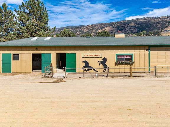 Welcome to Red Rose Ranch! Entering into the gated property you see this is a special residence. Situated on 2.05 acres on one of Bear Valley Springs most prestigious streets, this ranch will delight your senses. The circular driveway has both a house and barn entry off Martingale Way which is perfect for trailer parking and hay delivery. The breezeway separates the main 3/2 house from the additional 454s/f extra living area which includes a bedroom, full bathroom and living area. Recent appraisal did not include this additional s/f since it does not directly open to the main house. This may be perfect for your extended family or a possible rental with its own access. Walk along the covered front porch and enter into the light and open ranch home. Your large dining room leads into the great room, past the 247s/f bonus/patio room not included in appraised value, then into your chef's kitchen with custom cabinetry, stunning granite countertops and Thermador appliances. Cook and bake to your hearts delight! Down the hallway is the laundry area and then enter the primary suite. WOW, it is huge! The custom bathroom features an oversized jetted tub, massive stall shower, make-up vanity and his/her closets. Opposite of the great room are the additional two bedrooms and another full bathroom. Step out from the breakfast/bonus room to experience your sensational backyard and gardens. Perfect for entertaining or simply relishing in the tranquility and beauty of the varied garden areas, lawn and magical Koi Pond! Walk over to get greeted by the colorful Koi fish in the pond. Several designated seating areas are perfect to enjoy a book, conversation or a mid-day nap! As you cross your streambed bridge you will enter the amazing custom barn. Designed as a 6-stall barn with a tack room and lounge. 2 stalls have been opened to be 12'x24'. 3 stalls have turn-outs and the back 12'x24' stall opens to your riding area with trail access! An indoor cross-tie, grooming area where you can add a future hot water heater, plus an outdoor cross-tie and tack area make this a top-notch equestrian barn. Ride out to one of the valleys 50+ miles of equestrian/hiking trails. Just a 10-minute beautiful ride up the canyon to our fabulous equestrian center or off through the fields and open trails to experience the beauty of Bear Valley Springs! One of the sellers is a Ca. licensed real estate broker. Recently appraised and priced below the appraised value! This is a one-of-a-kind equestrian's dream ranch!