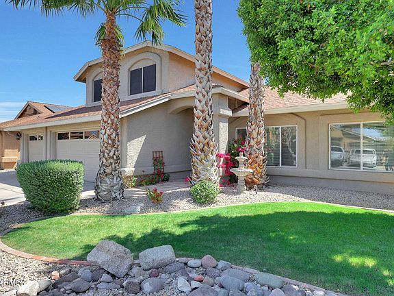 Beautiful renovated home with a stunning, lush backyard sitting on a premium corner lot across from the community park, with a 16' RV gate, RV parking, 3.5 car garage, large built-in storage shed, gorgeous travertine pavers, covered patio with wood plank and sparkling pebble sheen pool with a variable speed pump and waterfall. The first floor master is split from the 3 upstairs guest bedrooms and has a gorgeous free standing tub and walk in shower with marble accent tile and glass surround. The first floor features European white oak engineered hard wood floors, designer tile in the bathrooms and laundry, updated kitchen with custom tile backsplash, huge single basin sink and stainless steel appliances. Other special features to note are the vaulted ceilings, home is wired for security cameras and built in speakers, smart thermostat connected with alarm company subscription, tons of upgrades and mountain views! Don't miss this unique and special home. Close to the 17 and 101 freeways, shopping, parks, golf and more.