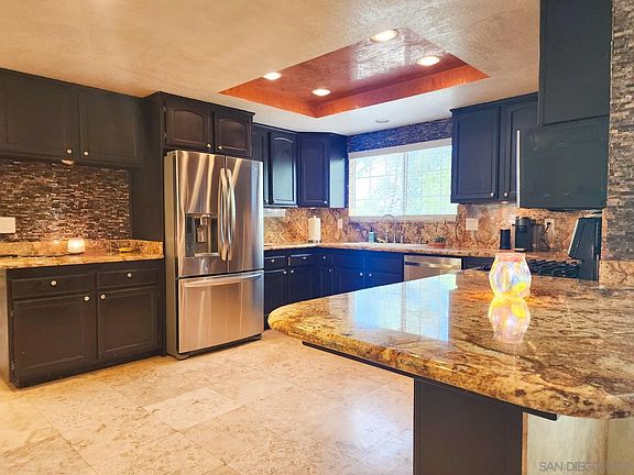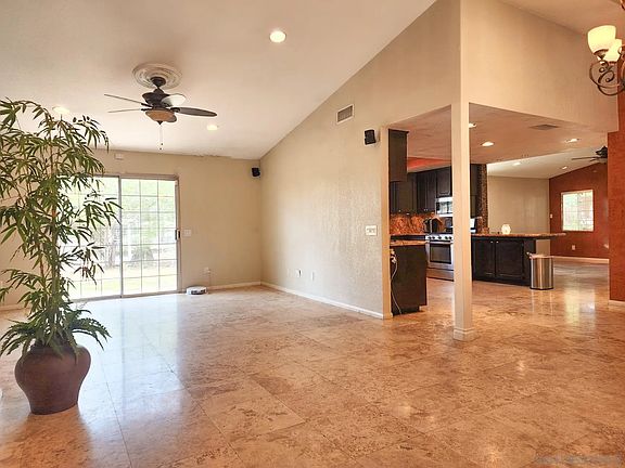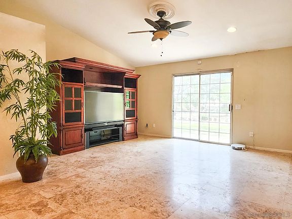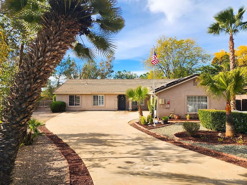 Quiet end of cul-de-sac location in the San Diego Country Estates. Over 1/2 an acre of level yard with mature landscaping, back access and room for dream options. Travertine stone flooring throughout common areas. Beautifully appointed kitchen and bathrooms with granite and stone. Built in office, separate laundry room off 2 car garage. Solar lease keeps monthly payments consistent. Solar and roof about 3 years new.