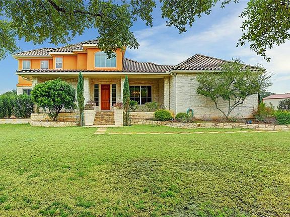 Gorgeous move-in ready Hill Country Luxury Home! Enjoy the beautiful views while living the country life on 5 acres! Complete with covered porches and a balcony with a view! Master bedroom downstairs with double vanity and walk in closet. Upgrades galore that include granite, slate gas burning fireplace, hardwood floors, double ovens, paved driveway, space for wine fridge and TV in kitchen and a bonus room upstairs! 3 car workshop with drive through for easy tractor access. Boat ramp and horses allowed.Restrictions: Yes Sprinkler Sys:Yes. Update: plumbing and electrical work being addressed in this vacant home