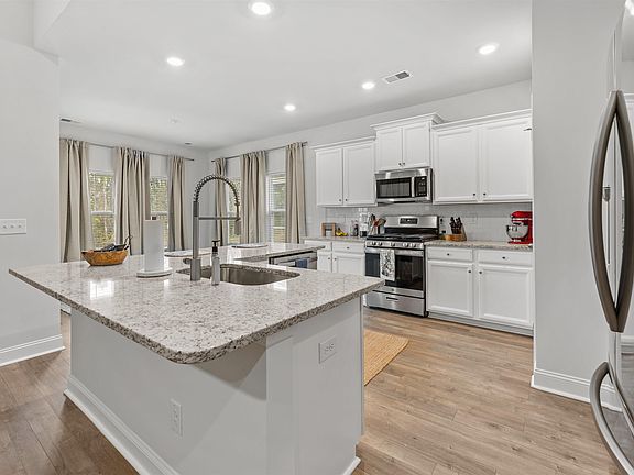 - Features: Breakfast Bar, Kitchen Island, Pantry, Stainless Steel Appliances, Solid Surface Counters