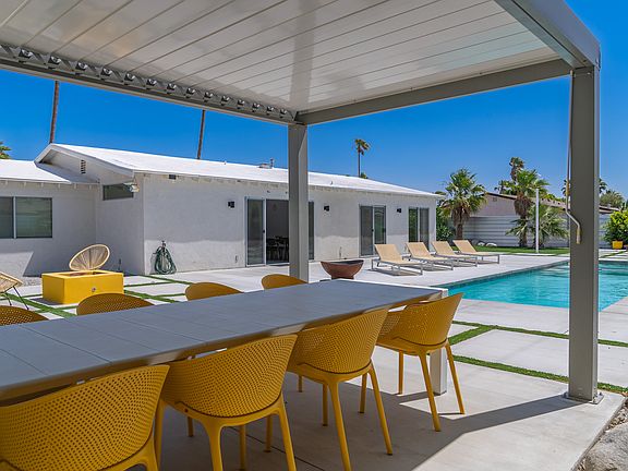 Recently renovated 3 bed/2 bath mid-century home available for LONG TERM LEASE ONLY. This property is furnished with a mid-mod flair AND fully outfitted to move right in! Just bring your toothbrush and favorite flip flops. Some of the inclusions are a full size washer & dryer, stainless steel appliances, microwave, coffee pot and even the toaster. Outside you will find a south facing oversized pool, spa, built in BBQ, fire pit and multiple seating areas (some exterior furnishings shown in pictures have been removed). Also included in the rent are WiFi, trash pick up, landscape and pool services. Tenant pays water, gas, electric & cable. Small dogs allowed upon approval with $500 deposit. AVAILABLE NOW. Call to schedule a private showing.