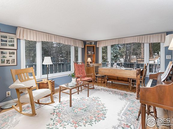 Imagine having mountain views, taking in the calm of the sounds of Big Thompson from your deck and grabbing your cup of coffee for a short walk into Rocky Mtn National Park. It is possible when you own this 3 bedroom/3 bath mountain raised ranch style home. The charm of this home is the living room having abundant windows to let in the natural light, and the original hard wood floors. Gather is the comfortable kitchen with a dining space. There is a large bonus studio for craft/sewing/hobby of your choice. The large wrap around deck and multiple flagstone patios make it easy to enjoy mountain lifestyle. The YMCA is less than a mile away and downtown Estes Park is just a couple of miles. The longtime owner have taken great care of this home over the years with multiple patios installed and flower beds and plantings. Accommodation zoning (A-1) allows for full-time living or vacation rental options, making this an excellent investment property. Home does not currently have a vacation rental permit. Start living what you envision is your best life.