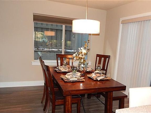 Attractive Awbrey Woods 3-BR townhome is bright and sunny. Super nice finishes and woodwork throughout. Great room plan w/ gas fireplace, wood flooring. Kitchen includes quartz countertops, tile backsplash, stainless appliances, undercabinet lighting. Undermount sinks, matching countertops in kitchen and baths. All bedrooms upstairs. Master includes dual vanity sinks, shower. suite. Jack & jill hall bath connects to guest BR. Built-in desk in loft area. Forced air gas heat w/ central AC.