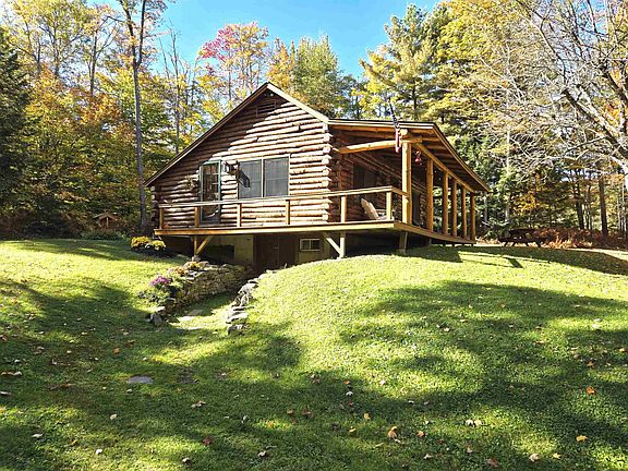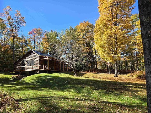 If you were to imagine the idyllic Vermont log cabin, this is it. Privately situated on 6.7 acres surrounded by manicured lawns, woods and a small pond, all at the end of a beautiful wooded lane. Sit on the front porch overlooking the serene setting or cozy up to the firepit on a chilly fall evening. The cabin has been upgraded to perfection with all new Anderson windows and doors, new appliances, new gas stove, insulated walkout basement, a new water pump and new underground electric service. In addition there is a relatively new propane powered standby generator plus super high speed fiber optic broadband. A three bay barn/garage is located just a few steps from the house. With just a few exceptions, the high quality furnishings shown in the pictures, right down to the dishes, are included in the sale. Currently formatted to sleep 6. Moving in just involves you bringing your suitcase!