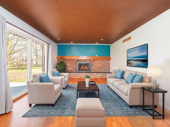 Nestled on two serene and private acres in Chelsea, this stunning two-story colonial exudes classic charm. The main floor boasts a sophisticated study with built-ins, a sunlit formal living room with a bay window, and a dedicated dining room perfect for entertaining. A beautifully updated kitchen features quartz countertops, new appliances, a beverage cooler, coffee/wine bar, whiteboard wall, and a spacious walk-in pantry. A lovely dining area flows seamlessly into the inviting family room, complete with a gas fireplace framed by brick and a rustic wooden mantle. A door wall leads to a spacious composite deck with an awning, ideal for grilling, entertaining, and relaxing in the hot tub while enjoying the expansive backyard. For added convenience, the main floor includes a laundry/mud room and powder room. Upstairs, you'll find four generously sized bedrooms, including a primary suite with a renovated en suite bathroom featuring updated tile floors and built-in closets. A stylish guest bathroom serves the remaining bedrooms. The spacious basement offers endless possibilities, ready for your personal touch. The property also boasts apple trees, three quarters of the property is fenced, and has a shed for storage. A sizable two car attached garage is equipped with an EV charger. Whole house generator. Don't miss the opportunity to own this breathtaking homeschedule your showing today!