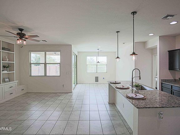 ** Seller to assist with buyer closing costs** Modern, custom, touches ! Airy with 9ft ceilings! Large, open family room seamlessly connects to the spacious kitchen, which features a central island , espresso cabinets & a walk-in pantry, perfect for hosting gatherings. Split floor plan ensures privacy. Tile flooring in all high-traffic areas & plush new carpet in the bedrooms. Both the primary & secondary bedrooms feature walk-in closets, providing ample storage space. Primary bath is a retreat with its stylish sliding barn door & modern fixtures. Enjoy the added elegance of built-in accent shelving & modern aesthetics throughout the home. Situated on a prime view lot with no neighbors behind! Both grass & artificial turf. Overhead storage in garage. Tot Lot close by! Make this HOM