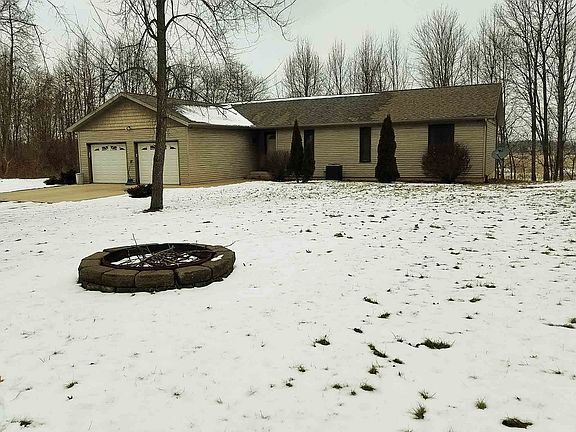 PRIVATE WOODED ANGOLA HOME: New in 2006, this energy-efficient ranch on 2.5 acres with full walk-out basement (for almost 3,500 total square feet) features a master bedroom suite, two additional bedrooms and bath as well as a potential 4th bedroom (already framed) and 3rd bath in the basement ready to finish. Other amenities include 24x14 patio, expansive great room with cathedral ceiling and kitchen with island and all appliances- all just two miles from shopping, restaurants, I-69 and free lake access!