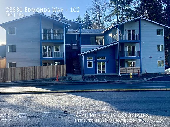 Welcome to the Edmonds Crossing! Be the first to live in this Newly Built 10 unit building near the Bowl of Edmonds. Brand new appliances. Vinyl plank flooring through out. Quartz countertops in kitchen and bath. Well thought out designs with your own personal patio! Tenants responsible for electricity and $100 per person water, sewer, garbage charge. EV CHARGER STATION! STORAGE AVAILABLE! - $45 application fee per adult -$30 pet application fee. - Renter's Benefits Package $30 monthly - Professionally Managed by Real Property Associates $100 Utility Fee Per Person Per Month $300 Per Pet Deposit (50% Refundable)