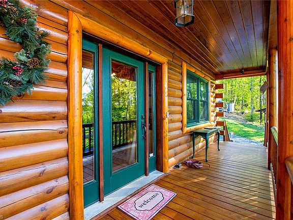 Ultimate Privacy at this Rustic Retreat on over 60 rolling acres! Immaculately maintained, fully renovated cabin features vaulted ceilings, stone fireplace, & large bedrooms. Huge separate garage with 2 bays & tons of room, as well as a separate barn in great condition. Cabin overlooks a private 1 acre pond, ready for canoeing or fishing off the floating pier, stocked with Bass, Perch & more! Rolling pastures with beautiful wooded areas, deer stands convey. Deck with counter & grill, patio with hot tub.