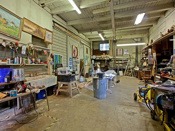 Zoned commercial - Neighborhood Business RA-5. 1.83 Acres of level property with single family home, Huge Warehouse and office/showroom Total structure are approximately 9,051 square feet. Possibilities are endless as the single family two story residence would make a great home with remodeling and has an unfinished basement. Large spring fed pond and creek border the property. Office has bathroom/shower and spacious rooms, Warehouse is huge with 3 crane lifts and high dock.