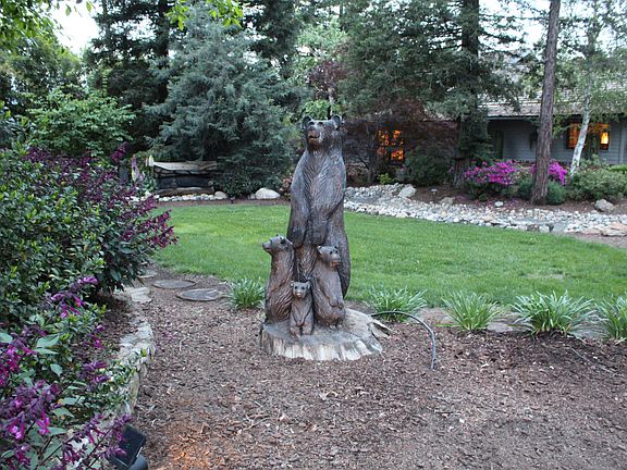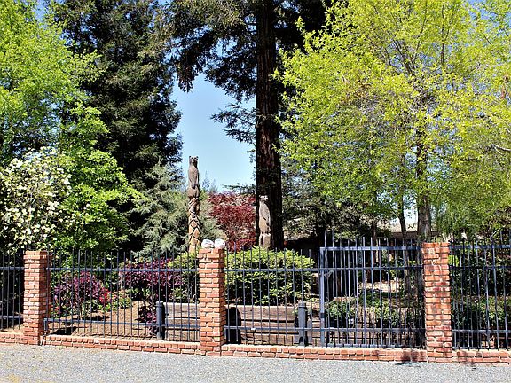 A Magical Enchanted Garden surrounds this large 2,795sf home, that includes 3 bedrooms, 4 bathrooms, living room, family room, library and an upstairs retreat that can be another bedroom or game room. The homeowner has lived in this private getaway for 62 years and has lovingly developed it into the amazing experience that it has become. There is a 396sf artist studio that has a vaulted ceiling with tons of natural light, which could become a wonderful guest house. The 14'x24' workshop gives you plenty of room for your hobbies. The gazebo is so relaxing with a water fountain feature. The outdoor entertainment area has a fire pit, a large waterfall into a Koi filled pond and plenty of room to seat several guests. There are enclosed storage rooms on both sides of the oversized 3 car carport. There are several custom carved wood statues to greet you throughout the property. Many beautiful weddings have been held at this very private and secluded location, which is fully fenced with an automatic gate. The total property is 1.85 acres with about 1/2 of it in the fenced-in area and the other half for plenty of parking and about 40 citrus trees. Come experience the Magic!