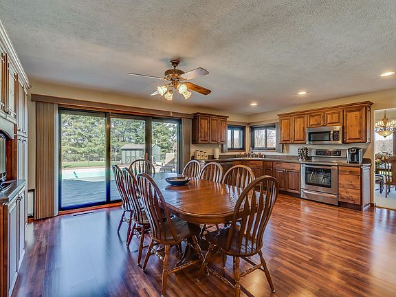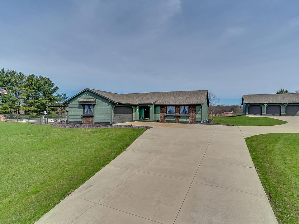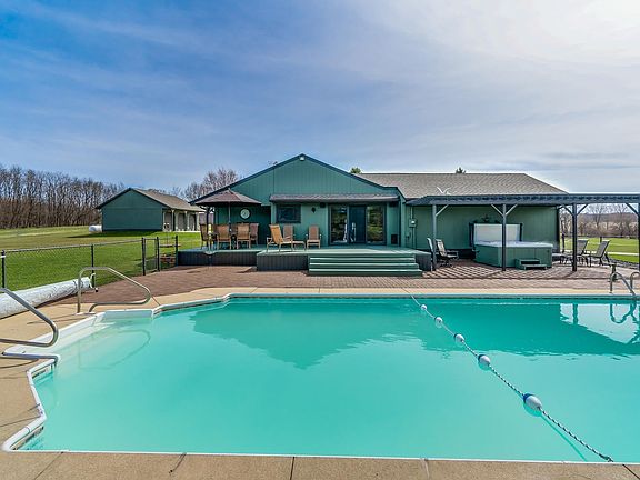 Meticulous kept pristine home would barely scratch the surface to describe this home. Situated on a small hill on 5 acres this home starts with the commercial grade 6 inch thick fiberglass reinforced concrete w/rebar and fence integrated. High end stainless steel appliances with an updated Alder Cabinets from Kountry Cabinets with soft close drawers and slide out pantry. The Inground 20 x 40 pool is heated with an auto chlorinator & Kreepy Krawler cleaner. Pool has an extra shallow end & is fenced in with locking gate and an outside pool house with bathroom. Detached barn has 9 ft. ceilings with 8 ft. doors and is heated. Basement is partially finished with 1 additional bedroom or office and a full bath. This is one is move in ready right now. Additional person items will be made available to buyer if so desired. ie: Deck furniture, riding lawn mower, air compressor, and much more. Schedule your showing today as tomorrow might be to late