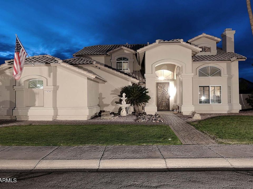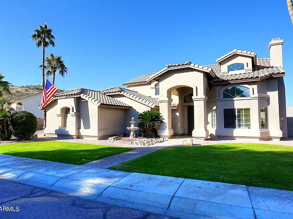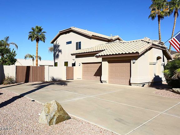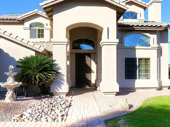Wow!! A rare find ...true 5 bedroom, 3 bath waiting for it's new family. Beautiful curb appeal located in the wonderful community of Pinnacle Hill. Grand entrance with handsome rod iron security door. Multiple seating areas, inviting fireplace in living to cozy up to during our AZ cold nights. Family room off kitchen with granite counters and stainless steel appliances and plenty of room for family and friend gatherings. Gorgeous wood looking laminate flooring throughout, NO carpet. Large primary bedroom suite opens up to a private 30 ft. balcony overlooking the yard and beautiful mountain views. Downstairs the Murphy bed with new mattress and attached desk area offers comfort for guests w/ full bath. New glass slider going out to the resort style yard featuring gas BBQ with bar seating, beautiful heated pebbletec pool/spa, rock waterfall and flickering firepit. 3 car garage with custom built-in cabinets, epoxy flooring plus RV gate. Also, newer roof with warranty. Come see this GEM!