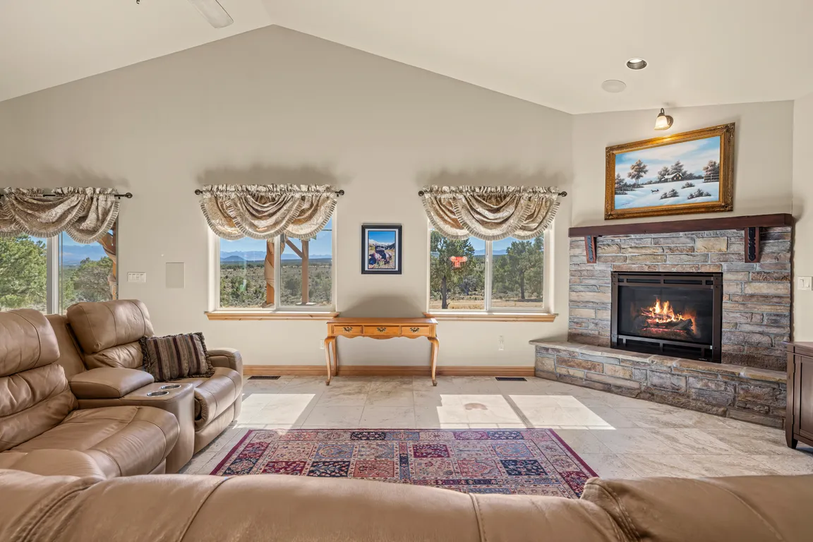Gas-log fireplaceMountain viewsPanoramic viewsCathedral ceilingPrimary suiteSitting areaLarge walk-in pantry