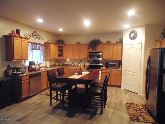 Spacious 4-5 Bedroom, 3 Bath Home. Located in the beautiful community of Riata West. Interior features include formal living & dining room with soaring flat ceilings in the entry and stunning wood and metal balister rails. Kitchen showcases cherry wood cabinets, stainless steel appliances, kitchen island w/Breakfast Bar, spacious walk in pantry, open to family Room. Large den/office room downstairs which can be converted to bedroom and half bath, 4 Bedrooms Upstairs, large master bedroom with vaulted ceilings with walk-in closet, master bathroom has double sinks with extended vanity, garden tub and separate shower, also with vaulted ceilings through master bathroom and closet. Ceiling fans/light throughout the house, window sunshades, home facing south!!! New Tile throughout the house. Extra large laundry room. 3 car-garage, RV gate/parking, extended concrete slab at rear yard with large patio cover and elecricity. Patio fan, security lighting in front and back yard and landscaped throughout front and backyard. Home is located within minutes of the I-10, shopping, and schools. Community amenities include green open spaces, playgrounds, & BBQ Ramada.