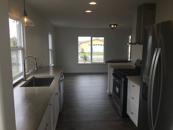 Wow! This luxury beach bungalow was so beautifully redone, its like a new home! But with much nicer finishes including concrete countertops, luxury plank flooring, recessed lighting, stainless steel appliances, bath with tile floor and white subway tiled bathtub/shower, new kitchen and bath cabinets, laundry room with washer and drier, new double paned windows, spray foam insulated walls and ceiling, new roof, new plumbing, new electrical system, all new sheetrock. This home was taken to the studs and the entire interior is brand new. Hear the ocean from the backyard, walk to the bay, this is coastal living at its best. This stylish bungalow has a big fenced back yard, a charming front yard with a white picket fence, a new deck off the dining room, and a big covered front porch.