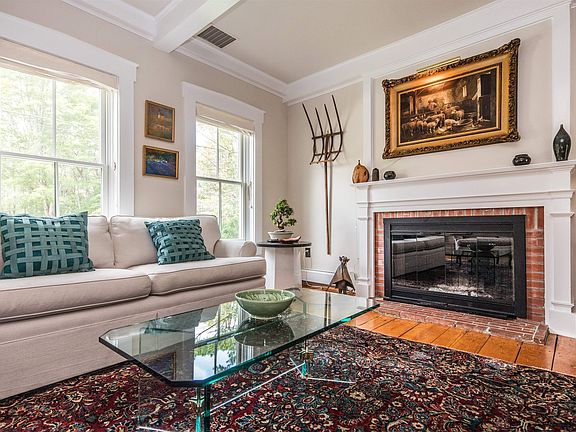 This renovated, well-maintained, 1850 farmhouse, on 40 acres of fields and forest, is tucked away on a quiet country road, yet only 5 miles from Okemo and the lakes region. Integrating a blend of old and new; an open, bright, modern kitchen, with granite countertops and a woodstove, gives space for large gatherings. The elegant living area, accented with a classic fireplace, antique moulding, beams, and pocket doors, also opens to a large bluestone patio overlooking mountains, sunsets and pastures. The first floor also boasts the original formal entry, a laundry room, mudroom and half bath. On the second floor, you’ll find a bright, spacious primary bedroom, with a fireplace and modern, full, ensuite bathroom with stone tile, radiant floor heat and soaking bathtub. Down the hall you'll find the second bedroom, a separate 3/4 bath, and a large third bedroom, with vaulted ceilings, and windows overlooking the fields. Off of this bedroom, is a large, sunny, flex suite with so much potential; make it another primary suite, a studio or office space. This space opens to its own deck with separate entrance. The Gambrel-style barn has stalls for two horses and an attached run-in shed, for two more horses. There’s an attached two-car garage, a 24x24 artist’s studio, plus a sweet, antique milk house. The forty acres include garden space and trails for hiking, cross-country skiing, sledding, horseback riding and VAST trail access. (35 acres are enrolled in the Vt. Current Use Program).