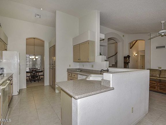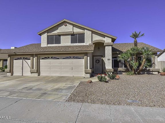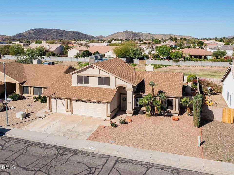 This amazing home is located on a private & premium lot backing up to a wash. Enjoy breath taking mountain views & sunsets on your large covered back patio with a built-in backyard barbecue & a beehive fireplace. The backyard is a private oasis! The inside of the home features; a downstairs Primary Bedroom with a large ensuite bathroom with a large soaking tub, separate shower & a private exit to the backyard, 3 bedrooms upstairs, 2.5 baths, formal living and dining area, large kitchen with an eat in dining area, kitchen overlooks the living room, Silestone kitchen counter tops, vaulted ceilings, ceiling fans, fireplace, both AC units are 1 year new, Roof replaced in 2018, exterior of the home was repainted in 2018, outdoor shed with electricity & a 3 car garage. The lot makes this a 10+