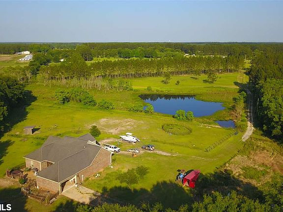 Here is your quiet private estate overlooking pond. Bring your animals. Truly a country retreat, 14 acre estate. Open split floor plan, oversized guest rooms. Custom Built House built in 2008 has 3153 SF including Attached Garage. 4 BR, 3 1/2 Bath Split BR Plan with High Ceilings. All measurements to be verified by buyer or buyer agent. See the Interior SF from Drawing Heated and cooled = 2646 plus attached Garage 507 = 3,153 SF Screened in Rear porch =172 SF This home is high-end. 10 ft ceilings with crown molding. Granite counter tops, tile back splash. Dual vanity hot air tub in master. Spacious screened in porch that opens to a large Concrete Patio. Open living room with a warm fireplace and a formal dining area. Scored stained floors, carpet in bedrooms. New Carrier system (inside and out). Close to I-10, commute to Pensacola and Mobile Al. Baldwin Beach express takes you straight to the sandy white beaches of the Gulf of Mexico. 10 x 24 Storage building and a metal shop/carport. Additional 3 acre tract (PPIN) 214958 could be bought, which is located on the very north end of Cumberland road and the corner of CR 62. Look for signs and rail wooden fence.