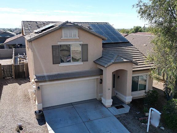 This charming 3-bedroom home, complete with a spacious loft, spans 1,996 sq ft of stylish living space. Established in 2013, it's highlighted by vaulted ceilings and ceiling fans with remotes in each room. A standout feature is the solar panel system installed in 2021, significantly reducing your power bills for cost-effective living.Inside, the kitchen boasts stainless steel appliances and a modern RO water system. Elegant tile flooring graces the living and dining areas. The expansive backyard is a private retreat, featuring an air-conditioned pet house and verdant gardens.The upper level includes a luxurious master suite with a sophisticated bathroom and walk-in closet. This home is brimming with so many remarkable features, we simply couldn't list them all here - it truly must be seen