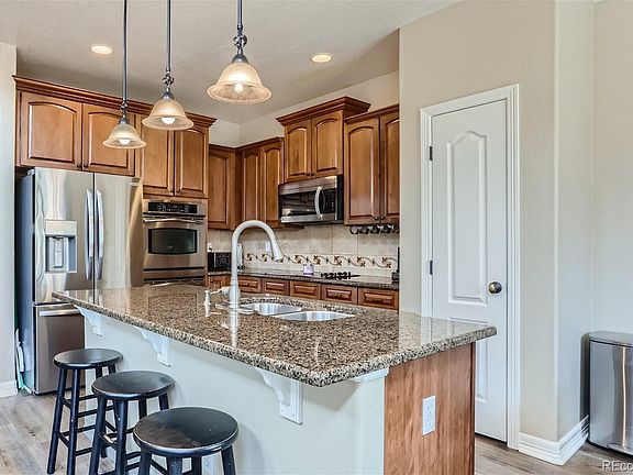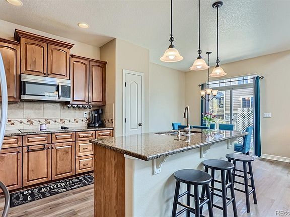 Welcome to this stunning home in highly desirable Sorrel Ranch! Recent basement finish includes media room with built in surround sound, bar area and office or 5th (non-conforming) bedroom. Walking distance to the community pool. Bedroom and full bathroom on the main floor. Large main level with tons of natural light includes dining room, office/study, powder room, vaulted living room with gas fireplace. Nicely upgraded kitchen with cherry cabinets and double oven - all S/S appliances. Granite counters and large island with sink, Pantry, eating area and access to the yard. Solar panels included – completely paid off – results in average electric bills of less than $30 per month! Cherry creek school district – walking distance to elementary and middle schools! Great location - close to 470 and Southlands mall. Seller will provide complete home warranty through October 2025!
