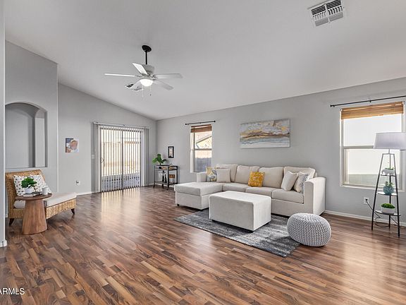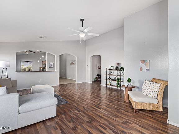 Welcome to this delightful home located in the rapidly growing town of Buckeye, Arizona, where comfort meets affordability. This single-story residence offers ample living space with vaulted ceilings that create an open and airy atmosphere.