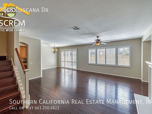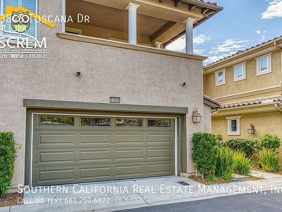 Spacious four-bedroom townhome with a downstairs bedroom located in the desirable West Creek community of Valencia. It features beautiful bamboo hardwood floors throughout. Upon entry, you are welcomed into an open living room that includes a gas fireplace, a ceiling fan, an entertainment niche, and wood shutters. Adjacent to the living room is a dining area with a sliding glass door that leads to a private patio. The kitchen boasts granite countertops, upgraded stainless steel appliances, and recessed lighting. There is one downstairs bedroom with mirrored closet doors, and the downstairs bathroom offers a vanity with a quartz countertop and a walk-in shower. Upstairs, you will find a loft area with recessed lighting, along with two guest bedrooms that also feature mirrored closet doors and ceiling fans. A full guest bathroom is located nearby. The primary bedroom includes a ceiling fan and two closets, one with mirrored doors and the other a spacious walk-in closet. The primary bathroom has quartz countertops, double sinks, and ceramic tile flooring. The laundry room is equipped with washer and dryer hookups, and the unit includes an attached two-car garage. Residents can enjoy community amenities such as a pristine pool, spa, paseos, parks, sports courts, and schools. The location is conveniently close to schools, shopping, restaurants, and the 5 Freeway. *Owner may consider a small pet.