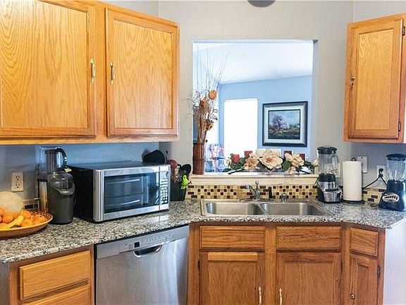 Kitchen opens into living room and dining area. The rooms have a split floor plan. Very clean and well kept home. Owners have dogs, they are friendly, but can be put outside for showings.