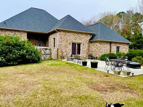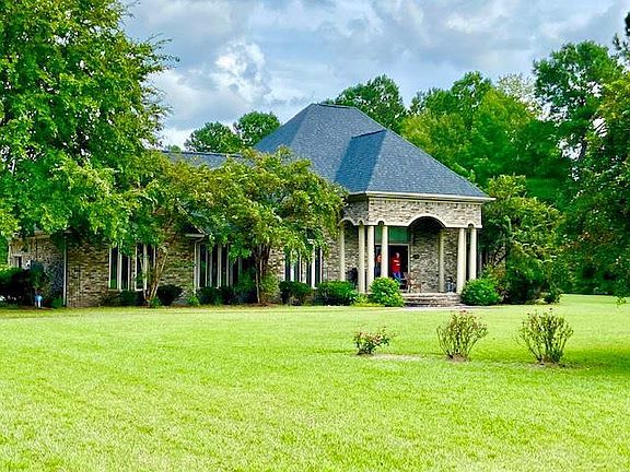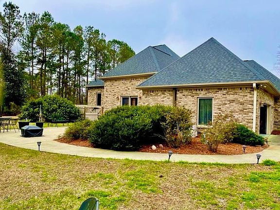 Beautiful home sits on 4.70 acres right outside of town, NO HOA. Home has 14 foot ceilings in living room, home has open floor plan, kitchen is open to eat in area and dining room which makes for family gatherings, great room is located on back of home and has a half bath, plantation shutters are all throughout the home, owners suite has very large walk-in closet and owners bathroom has double sinks, garden tub, shower, water closet. The other two bedrooms are located on the opposite side of the home with shared bathroom. This home's garage has it's own heating and air system which can be used as a game room. Home also has an extra wide driveway and parking area and plenty of land to build a workshop or garden area.