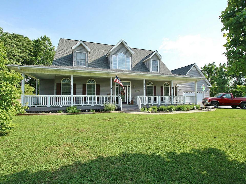 Gorgeous Cape Cod with Wrap Around Porch, Open Floor Plan, Master on Entry Level, Large Kitchen with a Breakfast Area, Dining Room, Great Room with Soaring Ceilings, Large Sun Room, 36X24 and 36X36 Garages. Above Ground Pool.