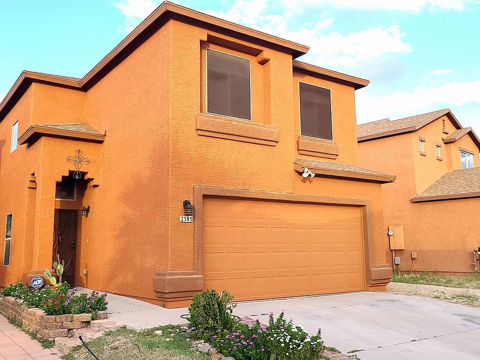 Seller is offering to pay 2-1 rate buydown program with an accepted offer. See flyer attached for program info. Great opportunity to own a 4 bedroom 2-Story home in the desirable Tres Pueblos Community. The kitchen features recessed lighting, a center Island and a breakfast nook. Black appliances + Gas Range. Large living room with dining area. Half bath down stairs for guests. Flooring tile throughout lower level. It also features high ceiling at receiving area and 9' elsewhere. Carpet flooring upstairs. Good size back yard with covered patio. Security screen doors front/rear. Community Park offers basketball courts, Playgrounds and Walking paths for evening walks and exercise. Low care landscaping front/rear. Fresh exterior/Interior paint.