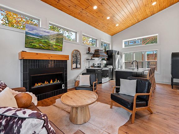 Everyone knows the first three rules of real estate, location, location, location! This thoughtfully designed new build is in the heart of Pigeon Forge, yet nestled in the woods on top of a ridge. You're walking distance to Dollywood, the trolly stop, the beautiful and underrated Pigeon Forge greenway, which you can use to walk or bike along the Pigeon River to The Island, an action packed resort destination. This brand new 2-bedroom, 2-bath contemporary mountain chalet offers 1,100+ square feet of tastefully designed living space, nestled in a serene wooded setting. Step inside to discover an inviting open concept design perfect for gathering. The spacious great room features a cozy fireplace that flows seamlessly into a well-appointed open-concept kitchen and dining area. The main level primary suite provides a peaceful retreat with a private bath showcasing a stunning walk-in shower. A private second bedroom suite occupies the upper level, offering guests their own peaceful space to unwind. Located in an exciting new resort community, you're just minutes from the heart of Pigeon Forge's endless entertainment, shopping, dining, and family attractions, all at your doorstep. The Great Smoky Mountains National Park's natural wonders await nearby. Whether you're seeking, a cherished family getaway, or a promising short-term rental investment, this pristine chalet delivers the perfect blend of modern comfort and mountain charm in one of the Smokies' most desirable locations. Projected rental income of $67,712.Don't wait to make this mountain dream yours! Contact us today!