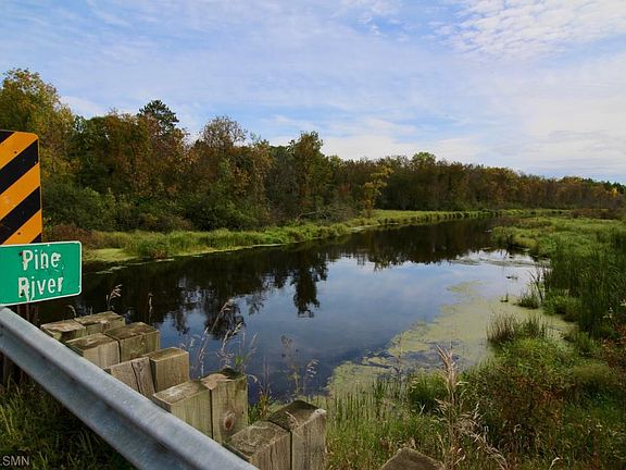 Wonderful 5 acre lot with Pine River frontage. House can be finished off or seller will remove home and you can build new. Mound septic and drilled well with 2 detached garages. Enjoy the Pine River where you can canoe or tube to Whitefish Lake. Contract for Deed available.