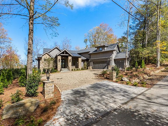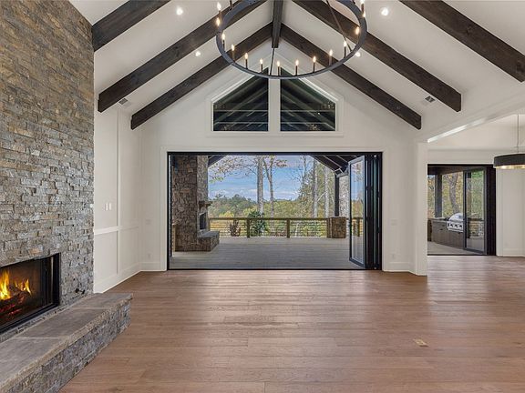 Nestled within the gates of Wildcat Cliffs Country Club but part of Wildcat Ridge Estates, this exquisite new construction estate home by Campagna Homes offers the pinnacle of luxury mountain living—without the requirement of club membership. Thoughtfully designed with a total of 4,298 heated sq ft and 7,514 total covered sq ft, AND ELEVATOR, this high-end residence blends timeless craftsmanship with refined modern comfort. The open-concept floor plan features a seamless flow between the gorgeously beamed cathedral ceiling living room into the dining area and gourmet kitchen, complete with top-of-the-line Thermador appliances and dry bar with ice maker—ideal for entertaining. Enjoy outdoor living on expansive porches both upstairs and downstairs, perfect for taking in the peaceful mountain views, breezes and serene natural surroundings. Two wood-burning fireplaces with gas starters, one in the living room and one on the covered porch, add warmth and ambiance on chilly mountain evenings. Telescoping Pella glass doors lead from the living area to the expansive covered porch with fireplace and built-in barbecue for easy indoor/outdoor entertaining. The main level includes a split plan for privacy with a spacious primary suite with a luxurious bath on the west end and a private guest suite with a full bath on the east end. Additional highlights of this exceptional property with views include a full main level laundry room with farmhouse sink and a secondary laundry area downstairs and a finished lower level featuring a large and open family room, game room, wine bar, a generous bedroom with ensuite bath plus an additional guest room or study with another full bath. This home will easily and comfortably accommodate a large family! There is plenty of space outside on the gentle lot for furry friends to frolic, gigantic gardens to grow and for toasting s'mores and stargazing around an outdoor fire pit. The oversized garage includes a dedicated golf cart bay along with a 576 sq ft unfinished area above that could be finished to use as a bunk room, home gym, office or additional storage space. Located within the gates of Wildcat Cliffs CC but part of Wildcat Ridge Estates so club membership is NOT required but the club is fabulous and offers an exceptional lifestyle with a premier golf course, croquet facilities, and a vibrant, welcoming membership. Architectural plans, renderings and finishes are subject to changes prior to construction completion.
