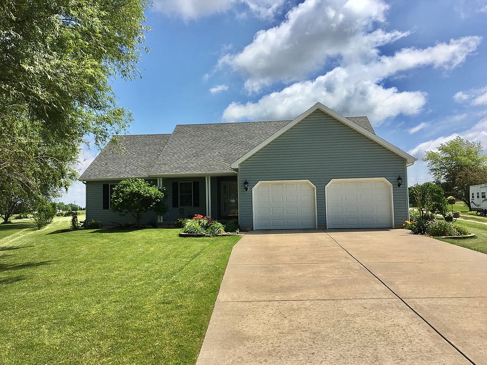 Custom built one owner ranch home north of Marseilles in Milton Pope Grade School District with easy access to I-80 featuring 3 bedrooms and 2 baths. Master bath includes dual sinks, Jacuzzi tub, separate shower, his and her closets, and private water closet. Trayed ceilings in master bedroom and living room. Large kitchen has hickory cabinets, new GE slate appliances and Corian countertop and sink. Kitchen opens to breakfast nook and has see through opening to living area. Hardwood floors throughout the living space with carpeted bedrooms and tiled baths. Oak trim and doors. 10 x 16 storage shed.
