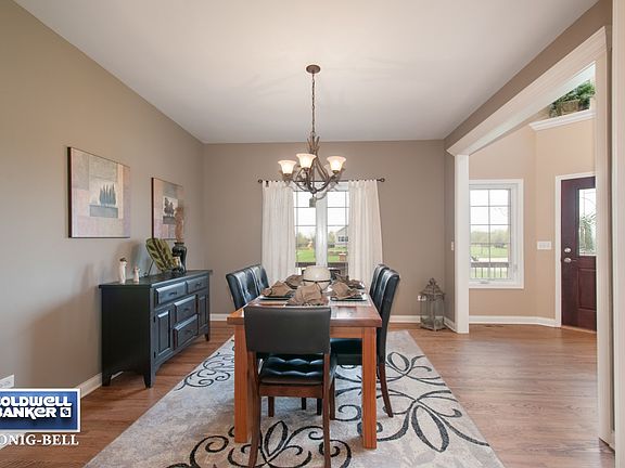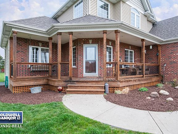 Gorgeous, custom-built home on 1+ acre features impeccable attention to detail including hardwood floors, fluted and picture box trim, 9 ft. ceilings and a truly stunning kitchen. Highlights include a 2-story foyer, formal dining room, beautiful living room with a gas fireplace, and an eat-in kitchen that is as functional as it is beautiful - with cascading and corner-wrap maple cabinets, a center island with breakfast bar, granite counters, pullout shelves, and a bay bump out. You'll love the 1st floor den/extra bedroom with a closet and sliding glass door; partially finished basement with a family room, bedroom and roughed-in bath; master bedroom with a tray ceiling, walk-in closet, and luxury bath - with a double vanity, tile floors, Jacuzzi tub and separate shower with tile surround and body spray. The 2nd and 3rd bedrooms share a jack 'n jill bathroom, which has a tile floor, separate shower and toilet, and pocket doors. Inviting front porch. 3 car garage. Beautiful!